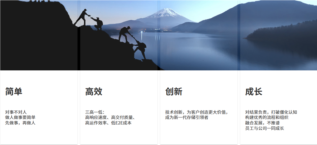价值观:以奋斗者为本,同甘共苦,简单高效,创新成长