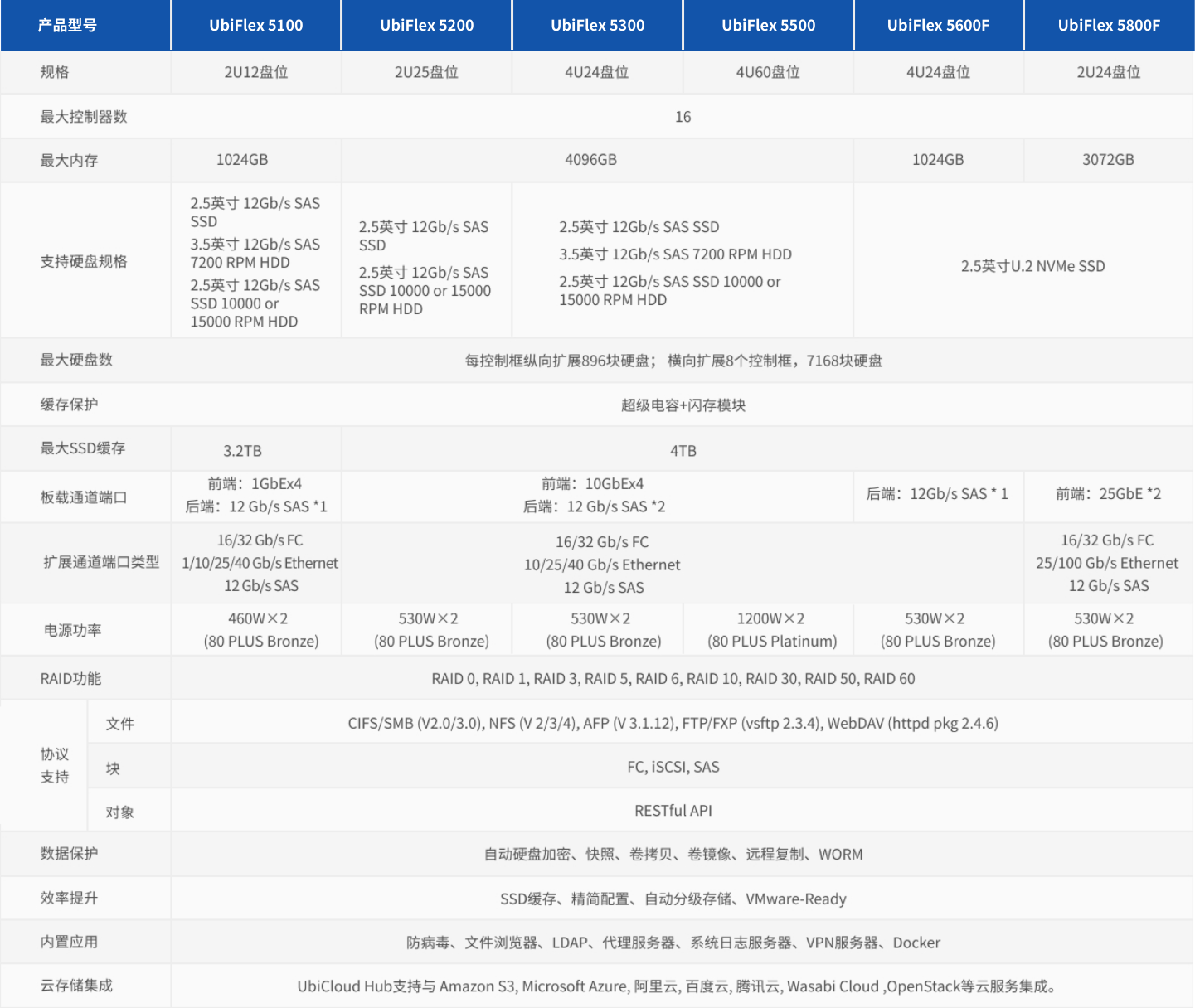 UbiFlex 5000系列企业级统一存储是一款面向企业/政府/行业用户的高性能存储产品。它通过先进的硬件和技术,提供超低延迟和高性能,适用于对延迟敏感的核心关键任务工作负载。支持多种存储协议,包括NAS文件共享、SAN块存储和Object对象存储服务。